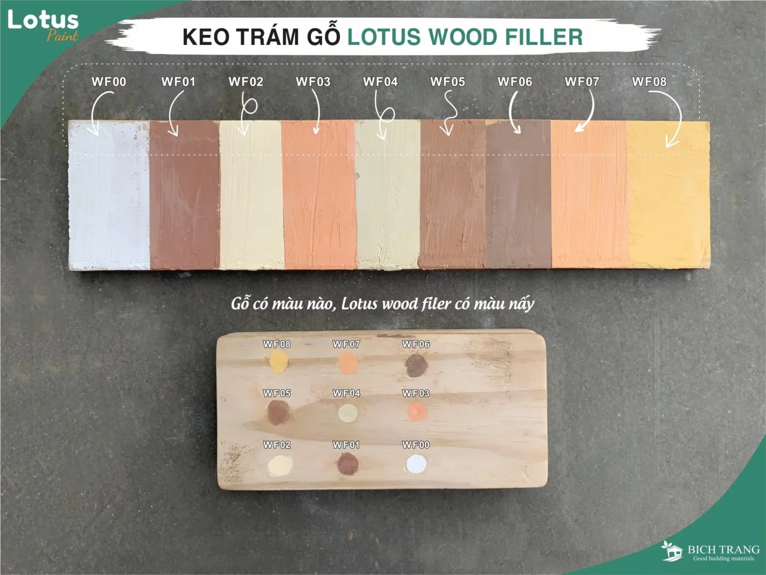 Bảng màu Keo Trám Trét Gỗ (Bột Trét Gỗ) Lotus Wood Filler